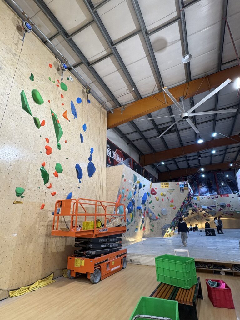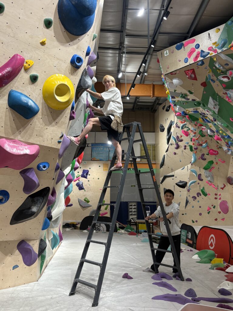 この日はリードのコンペをしている最中にボルダーエリアに追加セット。