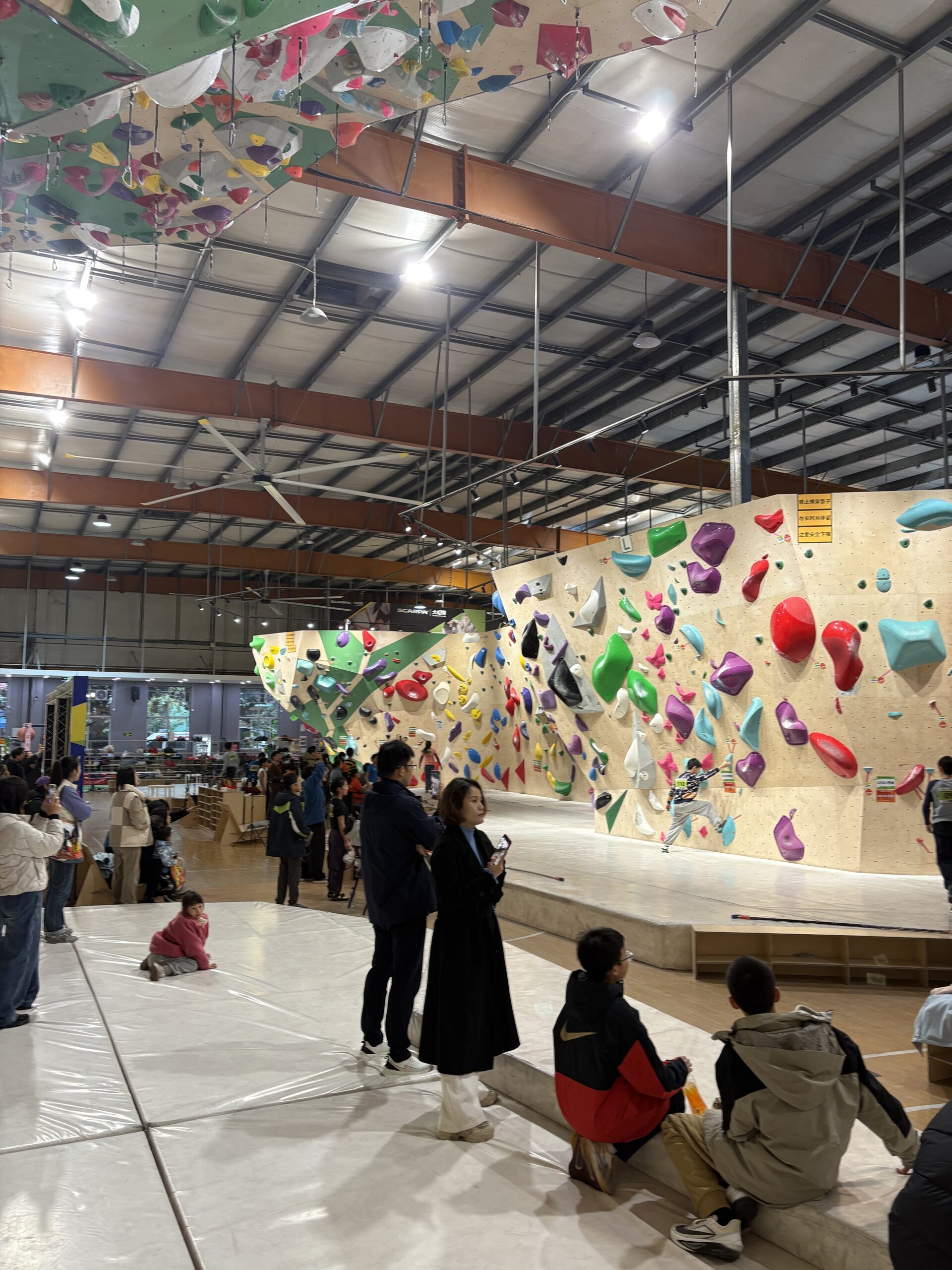 しかし、コンペやってる中で一般営業もしているので普通に一般のお客さんがボルダーをやりに来るのでカオス状態に!