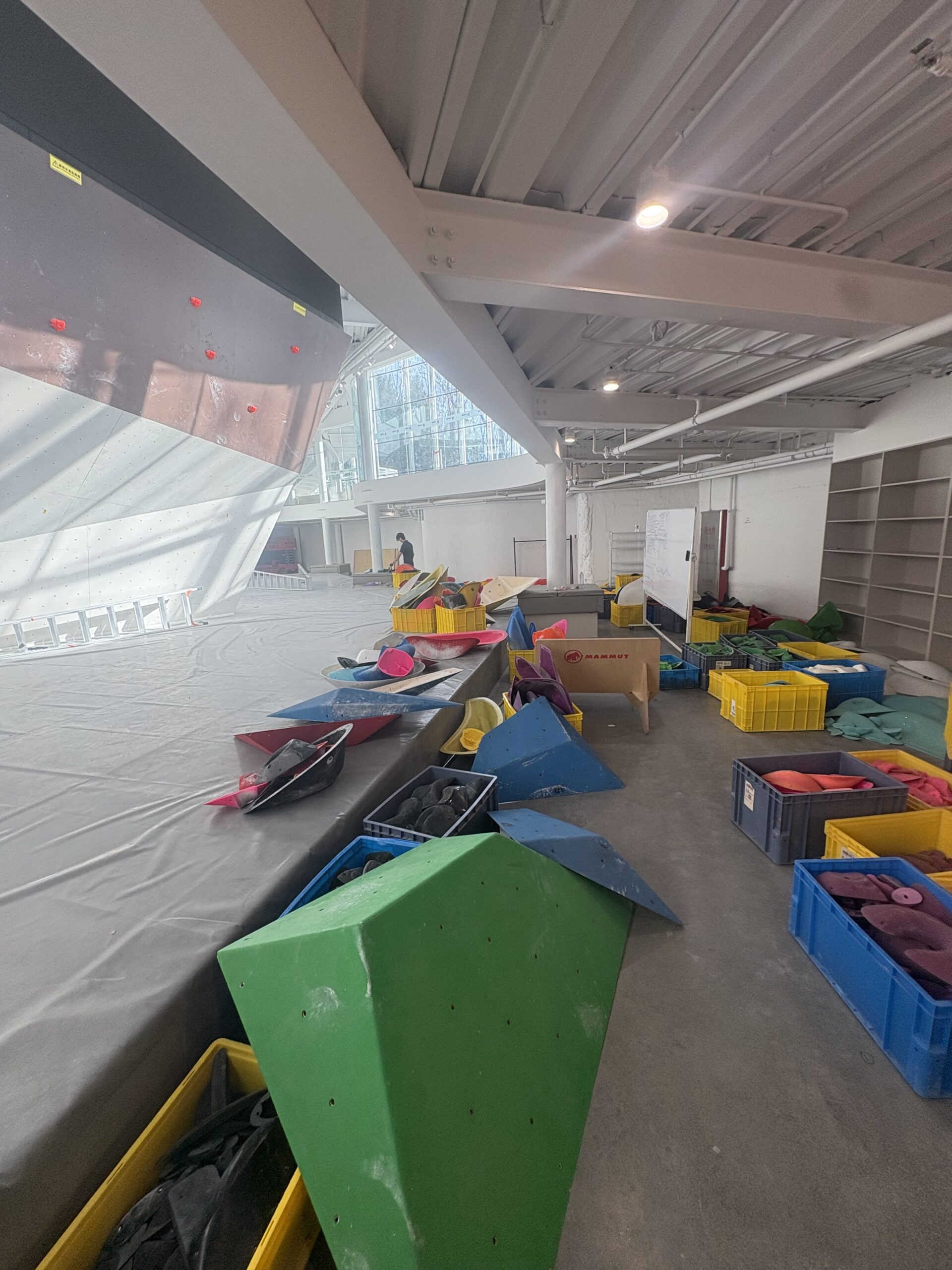 1階には1周60m以上ぐるりと回れる上級者向けボルダー。