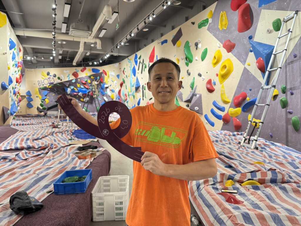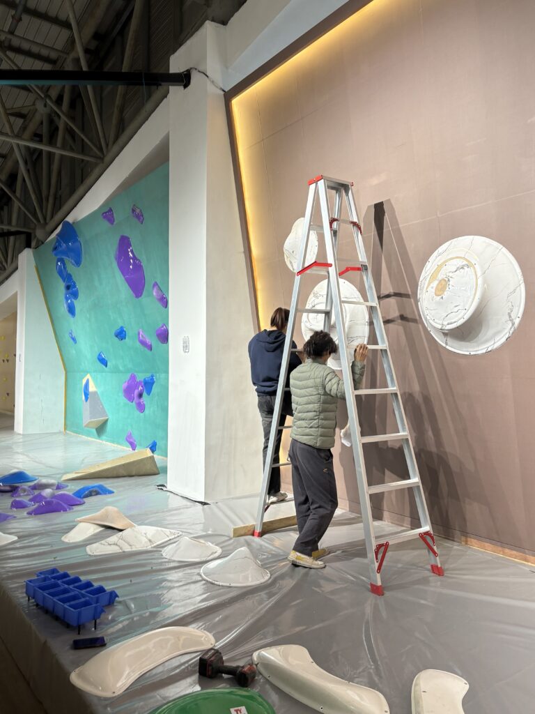 ホールド制作、ルートセットも一人でこなしながら昨年末にオープンしたという何ともタフなーオーナーのジムです。